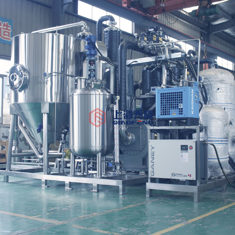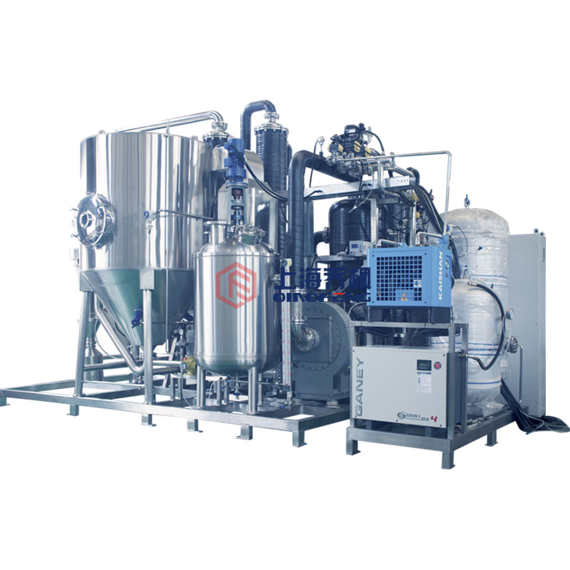 設(shè)備主要由:送料系統(tǒng)、加熱系統(tǒng)、霧化系統(tǒng)、噴霧干燥系統(tǒng)、惰性氣體循環(huán)系統(tǒng)、產(chǎn)品回收系統(tǒng)、冷凝系統(tǒng)組成。