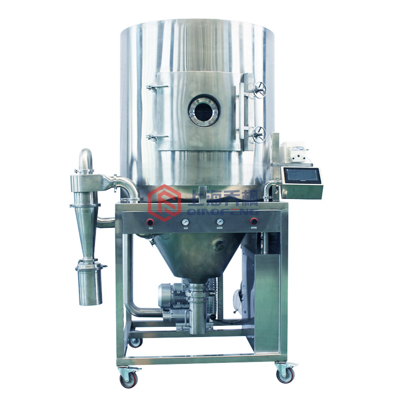 噴霧造粒干燥機是上海喬楓自主研發的一套造粒噴霧干燥機的。QFN-ZL系列造粒噴霧干燥機(喬楓**)專門的雙氣送液造粒噴頭,國內一大創新,直接將均勻的球形霧滴通過均勻的熱量變成顆粒。